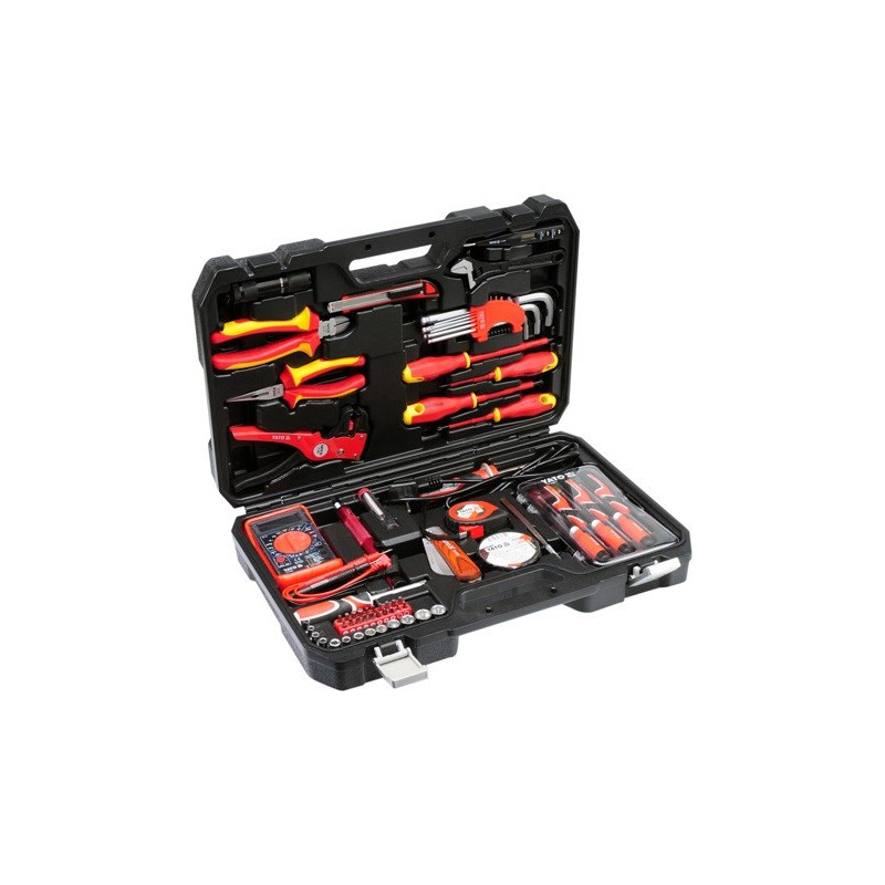 A comprehensive mechanic's tool kit with a sturdy black case to store and protect your tools. The YT-39009 features a compact storage system that allows you to easily access and organize your tools.