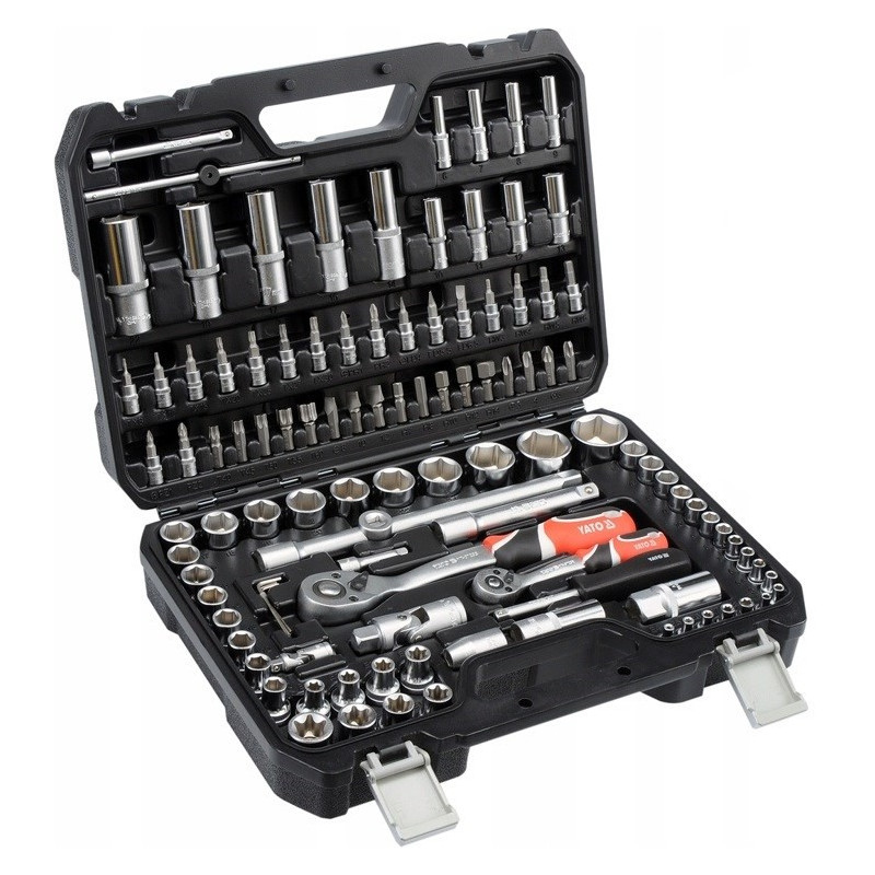 The Yato YT-38791 is a mechanics tool set that contains 108 pieces, including 1/2" and 1/4" tool holders. The set comes in a black case and includes wrenches for a variety of mechanical jobs.