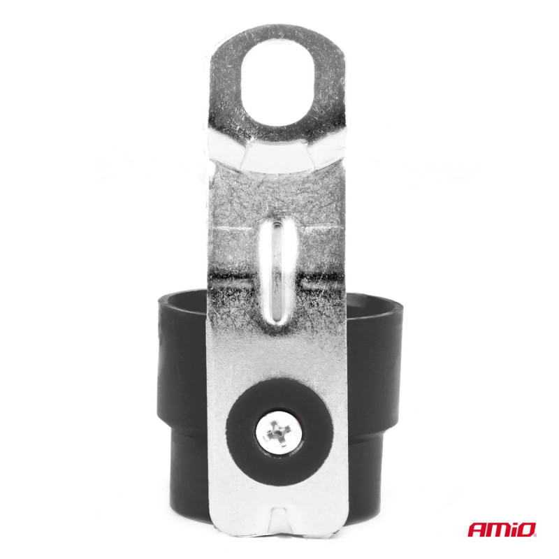 A practical black trailer plug holder designed for mounting on the vehicle frame or near the connection socket. It allows for safe and secure storage of the electrical plug (7-pin or 13-pin) when parked or not connected to the vehicle.