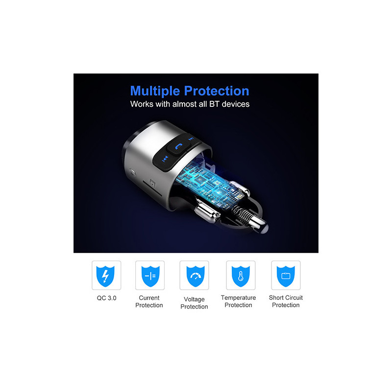 FM modulator for car BC41 (USB 2.0, USB 3.0, QC, hands-free)