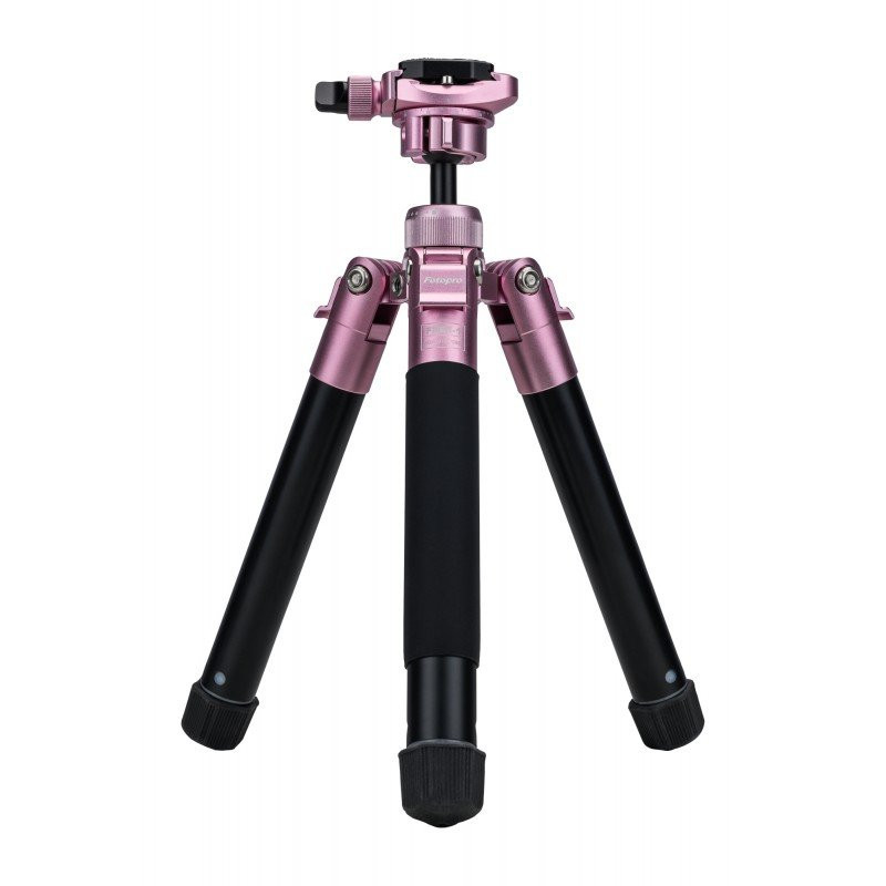Fotopro Free-1 is an ultra-light pink tripod that fits easily in your backpack. It offers a working height of 25 to 152.5 cm. Thanks to the rotating clamp system, you can unfold it in seconds. It is an ideal choice for photographers, filmmakers, vloggers and travelers who value extreme mobility and value every gram of luggage. The unique design allows you to remove the telescopic central column and easily turn it into a monopod with a maximum length of 84 cm. The tripod also has an additional mounting hole, a spirit level, non-slip feet and a panorama control system. There is also a carabiner and a smartphone holder compatible with the Arca-Swiss standard.