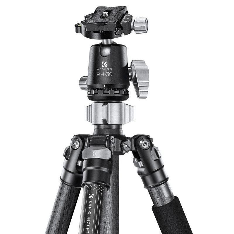 The KF Concept X254C4 tripod is made of carbon fiber and has a maximum load capacity of 12 kg. It has a BH-30 ball head, a compact 50 cm size for transportation and weighs 1.55 kg.