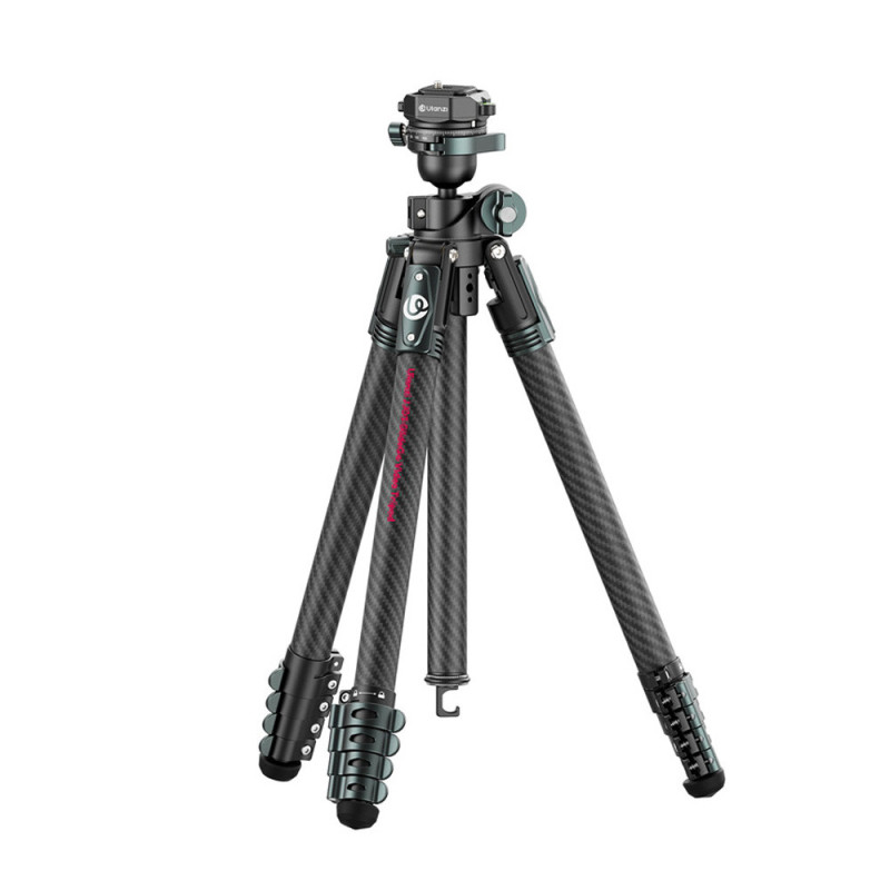 The JJ05 Top Travel Tripod is a lightweight and portable tripod made of carbon fiber and aluminum alloy for high and low angle photography. It features a two-section center column for height adjustment and a ball head that allows 360° panoramic rotation.