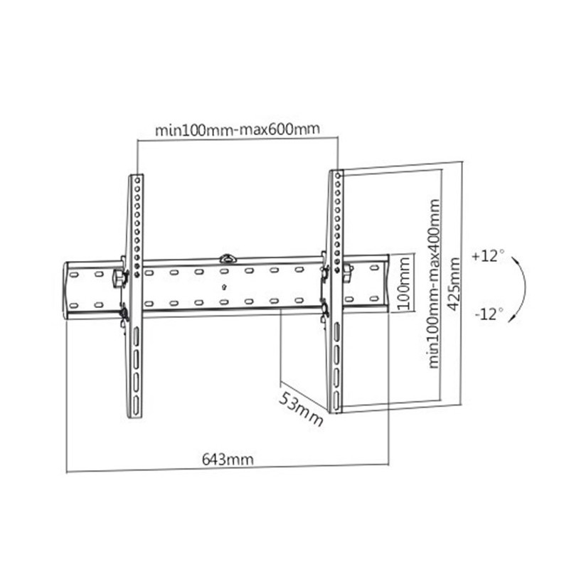The Gembird WM-70T-02 TV mount supports screens from 94 cm (37') to 177.8 cm (70') with a maximum weight capacity of 40 kg. It has a tilt angle range from -12 to 12 degrees and is compatible with a variety of VESA mount sizes from 200 x 200 mm to 600 x 400 mm.