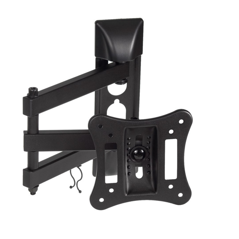 The Maclean MC-719 wall mount supports LCD, LED and plasma TVs from 13' to 27' with a maximum weight capacity of 15 kg. It has a swivel design and comes with a mounting kit with a maximum VESA mounting size of 100 x 100 mm.