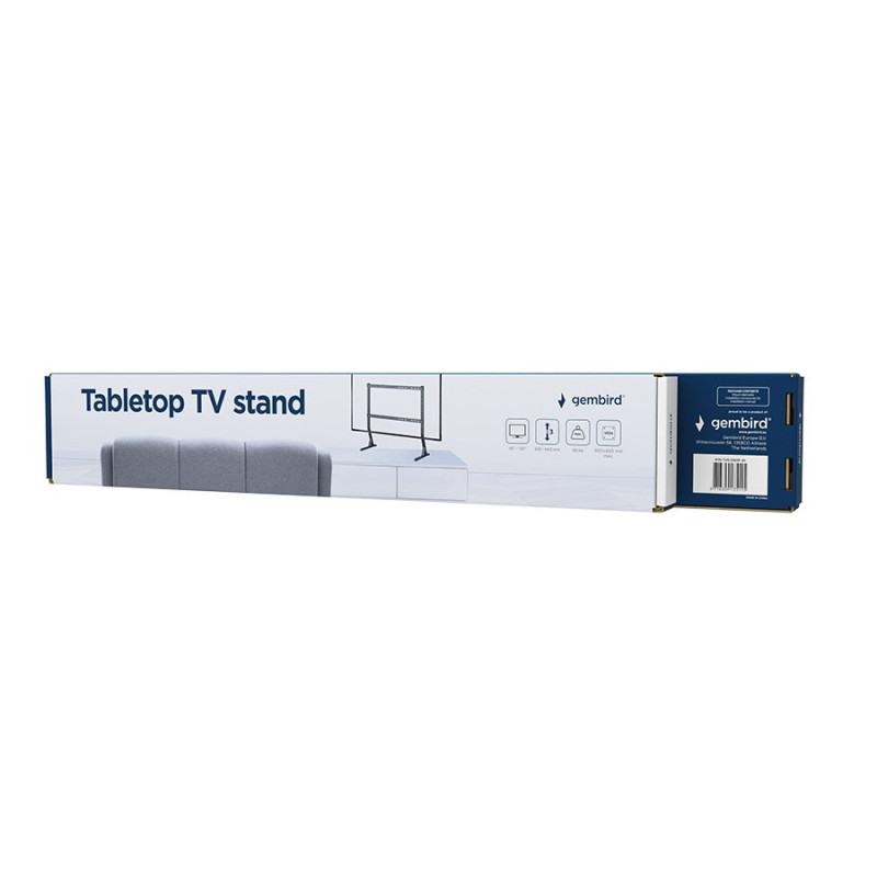 The Gembird TVS-D90F-01 TV stand is suitable for screens from 45" to 90" and can support a weight of up to 60 kg. It features height adjustment and cable management, and the sturdy steel construction ensures stability.