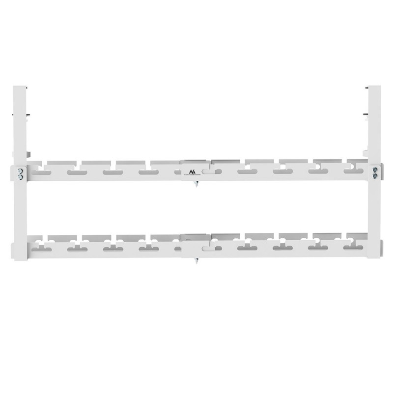 The Maclean Under Desk Cable Organizer is designed to hold a maximum weight of 5kg and can be adjusted up to 728mm in length. It has two levels, is made of steel and comes with cable ties for organization.
