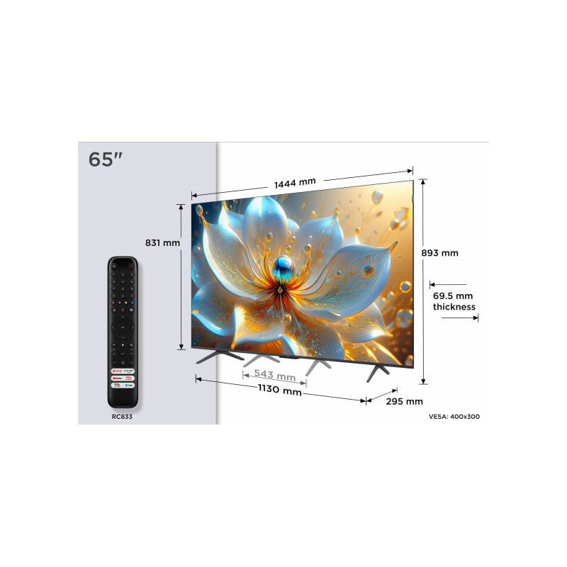 | Izmēri bez statīva (PxAxD) | 1444 x 831 x 69 |