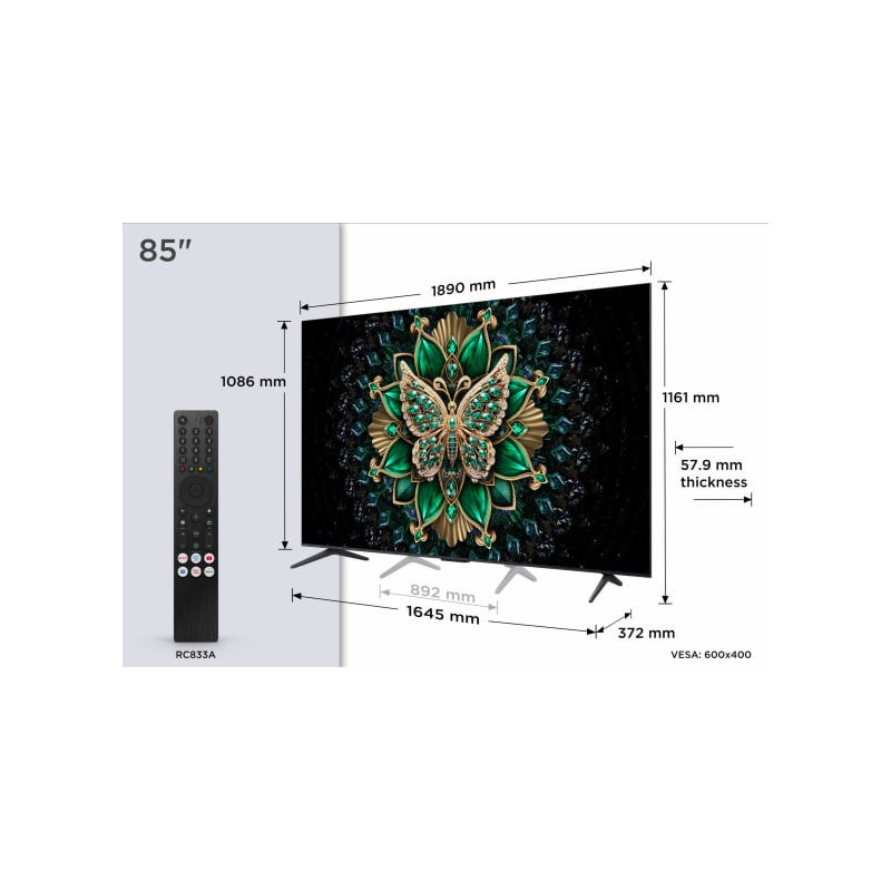 | Dimensions without stand (WxHxD) | 1890 x 1086 x 58 |