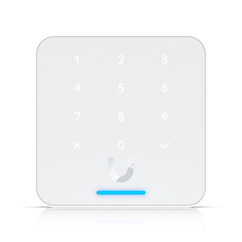 Advanced Access ControlThe Ubiquiti UniFi Access Reader G3 Flex White is a third-generation NFC card reader equipped with a keypad and supports Apple Touch Pass, providing multiple authentication methods for secure entry. Users can unlock doors using the keypad, NFC cards, the UniFi Identity mobile app, or Touch Pass, offering flexibility and convenience. The device also provides entry and exit greeting messages, enhancing the user experience during access events. The UA-G3-Flex-W combines advanced access control features, robust construction, seamless integration, and a user-friendly interface to provide a comprehensive solution for secure and efficient entry management. The UA-G3-Flex-W is designed with user interaction in mind, featuring capacitive buttons that provide responsive input, even when used with moisture or most gloves. The device includes an 8-ohm, 1W speaker that delivers clear audio feedback during access events, and multi-color LEDs (Red, Green, Blue, White) to visually indicate access status, providing immediate feedback to users. These features enhance the overall user experience by offering intuitive and immediate responses to access attempts, ensuring smooth and efficient entry management.