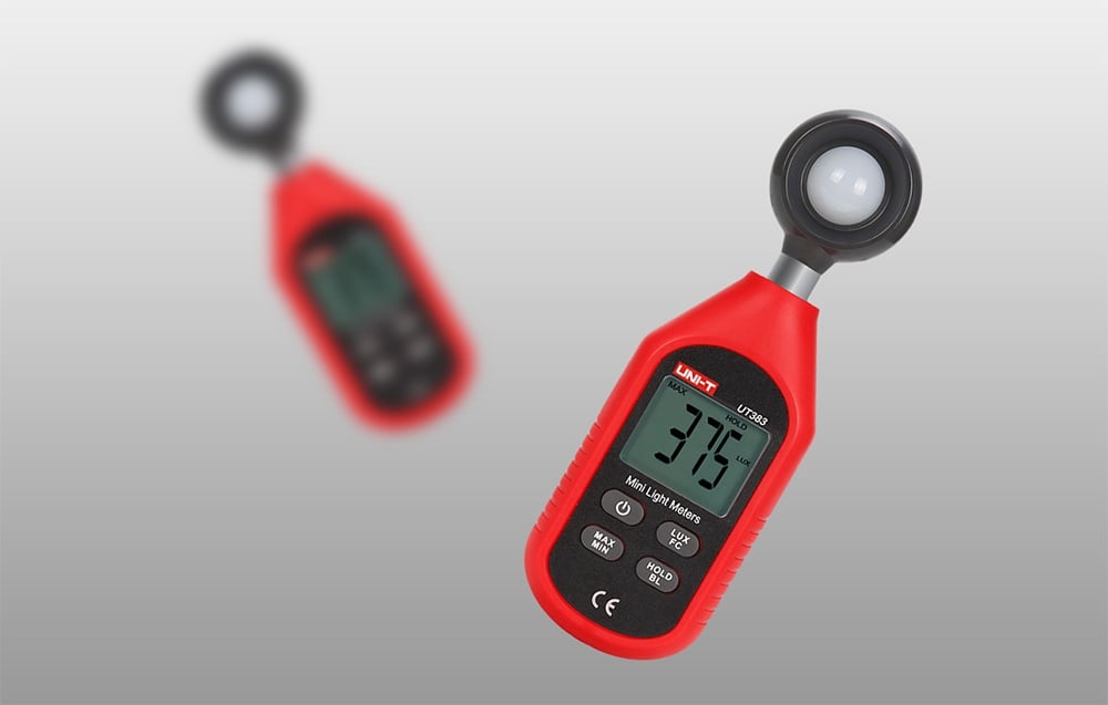 UNI-T UT383 is a lightweight and handy digital lux meter designed to measure light intensity in Lux and Fc units. Thanks to its large measuring range and fast response time, it will prove useful both in professional work - such as in design offices, industrial plants, photo studios - and in everyday use at home, school or gardening. The meter is distinguished by its simplicity of operation and easy-to-read backlit screen.