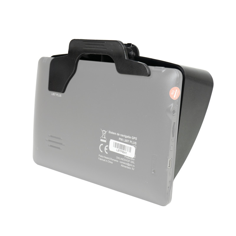 Sun visor for portable GPS navigation systems with 7 inch screen.