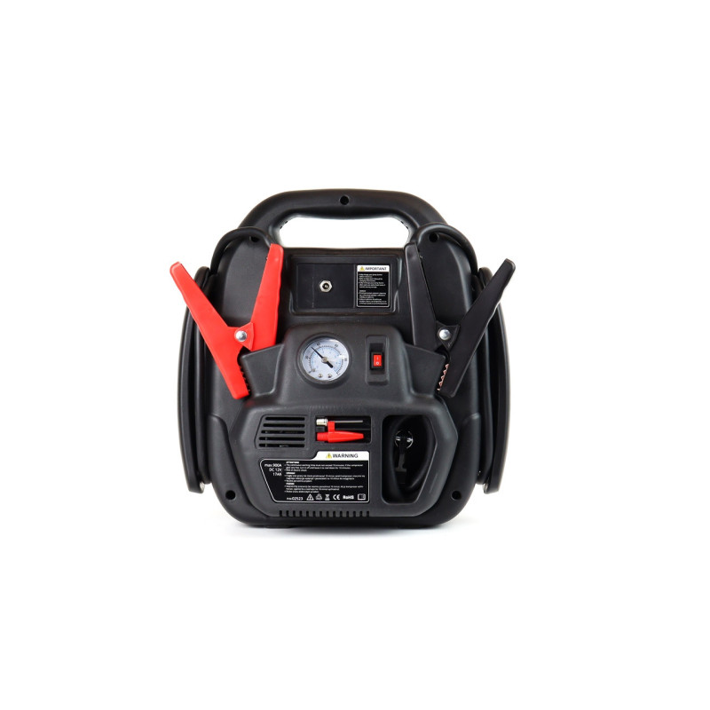 The jump starter is capable of delivering ample current to jumpstart cars, light trucks, ATVs, boats, lawn equipment, and other 12V devices. Three LED battery status lights indicate battery power level, showing when the device is charging, and when it is fully charged.