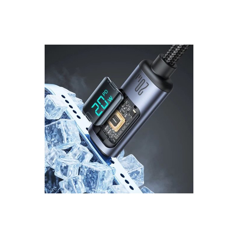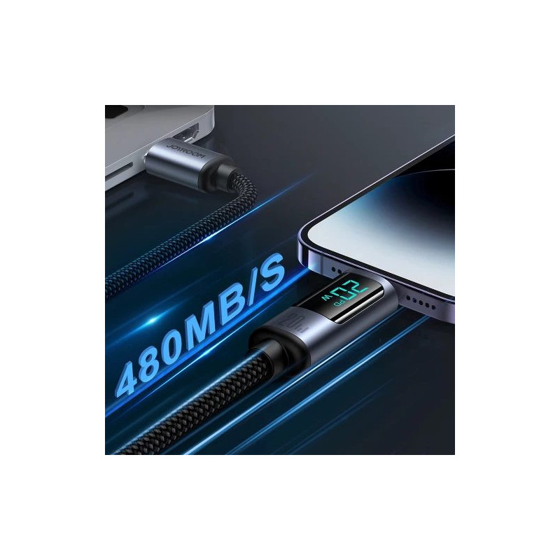Joyroom Prism Series A16 LED Display Cable with Lightning / USB-C 20W 1.2m Length - Black