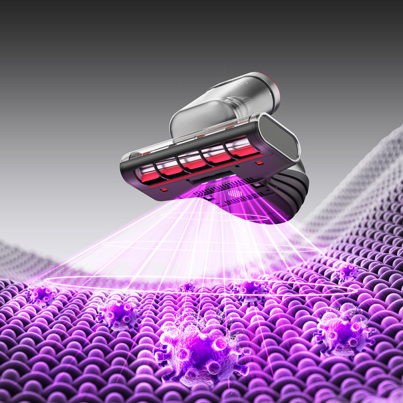 Ultrasonic waves affect dust mites, enhancing the action of other elements of the cleaning system.
