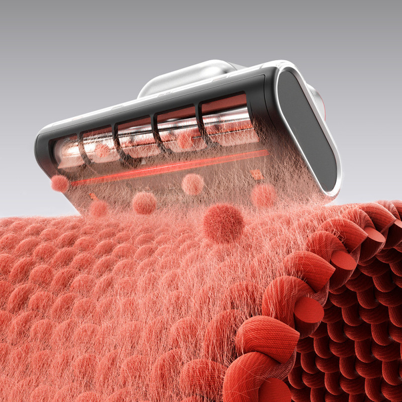 The suction power of 18,000 Pa and 60,000 strokes per minute effectively extract and remove dirt from inside fabrics.