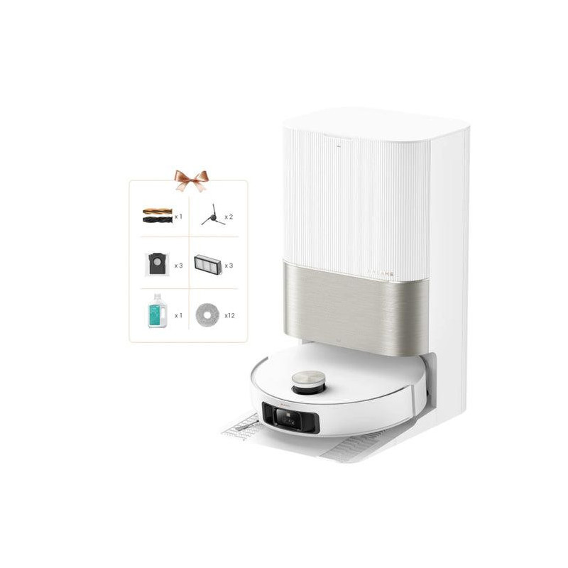 | Summary | Dreame X50 Ultra Complete. Dust container type: Combi, Product colour: Black, Stainless steel, White, Shape: Round. Base station functions: Charging, Purification, Dust capacity (total): 0.395 L, Water tank capacity: 4.5 L. Battery capacity: 6400 mAh, Runtime: 220 min, Battery life: 205 m². Height: 111 mm, Width: 350 mm, Depth: 350 mm |