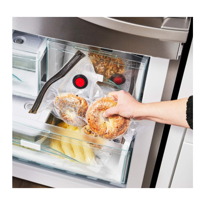 The Zwilling Fresh Save Vacuum Sealer Set - 49 cm (36800-305-0) includes three rectangular bags that ensure your food stays fresh for longer. Made from a combination of plastic and silicone, these airtight bags are suitable for freezing, guaranteeing optimal preservation of ingredients. The transparent white design makes it easy to see the contents, maintaining their quality.
