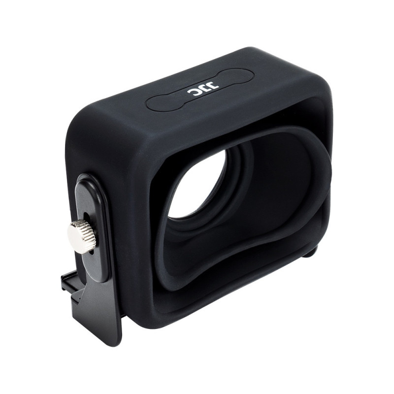 The JJC LVF PRO1FX camera LCD viewfinder effectively blocks light from the screen, ensuring a clear view even in bright sunlight. It has 3X magnification, is adjustable for both landscape and portrait orientation, and comes with a quick-release plate for easy attachment to cameras.