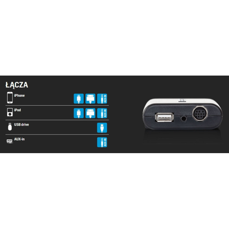 Adapter foriPod and USB Gateway 300is the perfect solution for a car audio system with features such assteering wheel controls,text display,iPod chargingand some additional features.