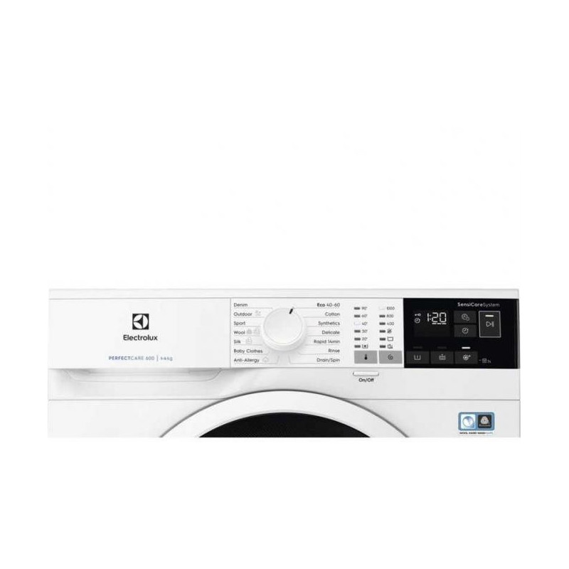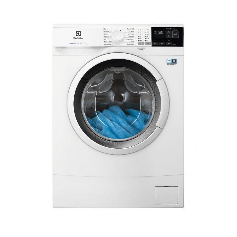 Prekės ženklas- Electrolux. Modelis- „PerfectCare“ EW6SM404W. Plotis- 59.5 cm. Pilnas gylis- 37.2 cm. Aukštis- 84.3 cm. Spalva- Balta. Svoris- 53.5 kg. Energinio efektyvumo klasė- D. Elektrinio variklio tipas- Su šepetėliais. Vandens sąnaudos ciklui- 35 l. Gręžimo efektyvumo klasė- C. Skalbimo efektyvumo klasė- A. Skalbimo talpa- 4 kg. Gręžimas, aps/min- 1000. Valdymas- Sensorinis, Elektroninis. Programų skaičius- 14. Skalbimo programos- Itin greito skalbimo programa, Vilnos skalbimo programa, Medvilnė, Sintetika, Sportinė, Anti alergijos programa, Šilko skalbimo, Gręžimas ir išpumpavimas, Baby Care, Delikati programa, Eco programa, Skalavimo programa, Džinsų programa, Lauko drabužių programa. Ekranas- Taip. Ekrano tipas- LED. Triukšmo lygis gręžiant- 76 dB. Apsauga nuo vandens išsiliejimo- Taip. Programos pradžios atidėjimas- Taip. Vaikų saugos funkcija- Taip. Garantija- 24 mėn. Papildoma informacija- „Woolmark Blue“ sertifikatas. „Time Manager“ - leidžia trumpinti skalbimo laiką. Būgno balanso kontrolė. Naudojant mikštiklį su „SoftPlus“ pagalba apsaugomas pluoštas ir pratęsiama kiekvieno rūbo naudojimo trukmė. „ProSense“, „Eco valve“.
