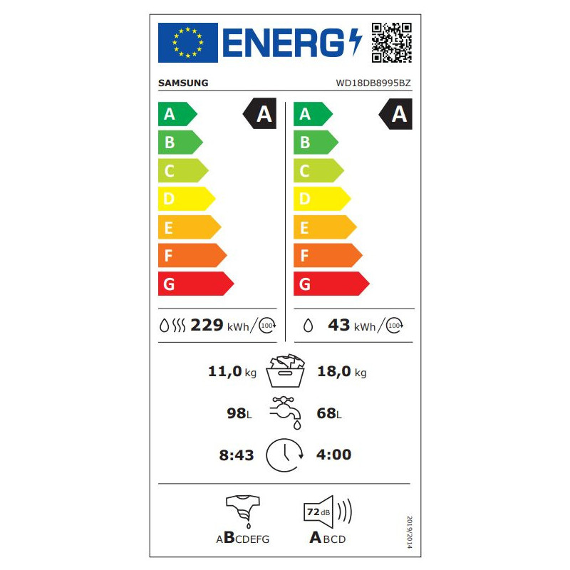 | Energijos vartojimo efektyvumo klasė (Skalbimas + Džiovinimas) | A |