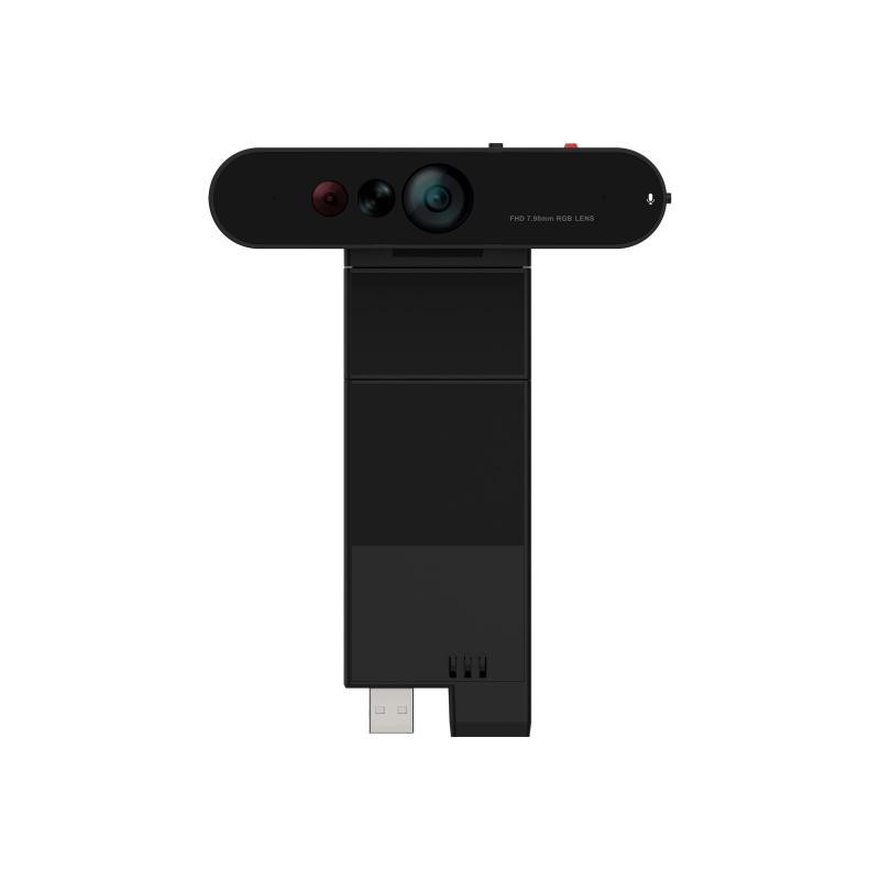 The Lenovo ThinkVision MC60 (S) webcam features dual noise-canceling microphones for clear audio during video calls and offers multiple resolution settings up to 1920 x 1080 at 30 fps. It includes a privacy shutter and IR camera for added security, and supports a variety of environmental conditions.
