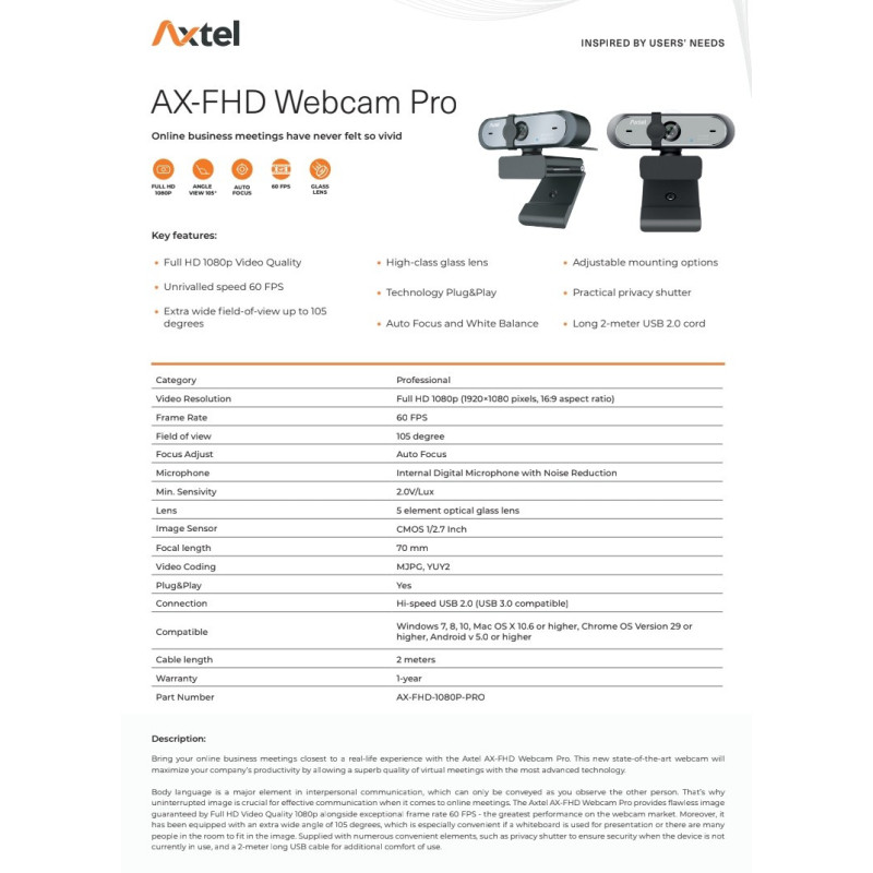 uninterrupted image is crucial for effective communication when it comes to online meetings. The Axtel AX-FHD Webcam Pro provides a flawless image