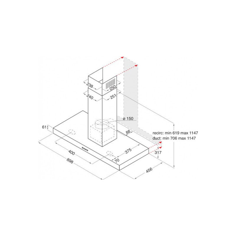| Hood installation method | On the wall |