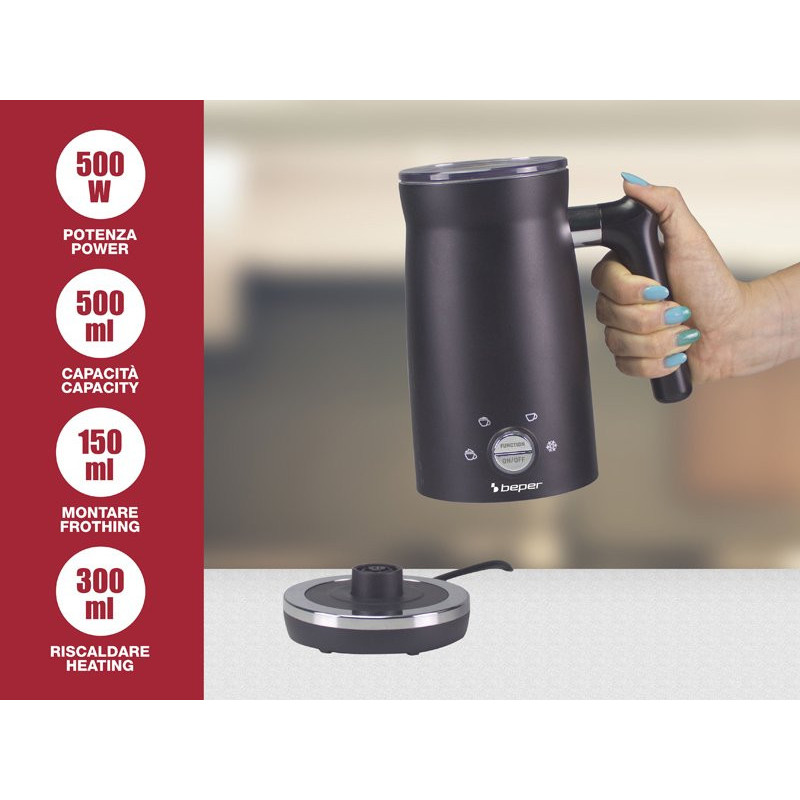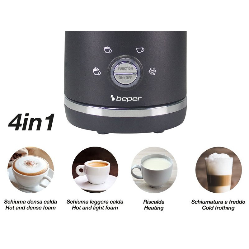 Electric milk frother with 4 functions: Hot and thick foam; Hot and light foam; Hot; Cold foam.
