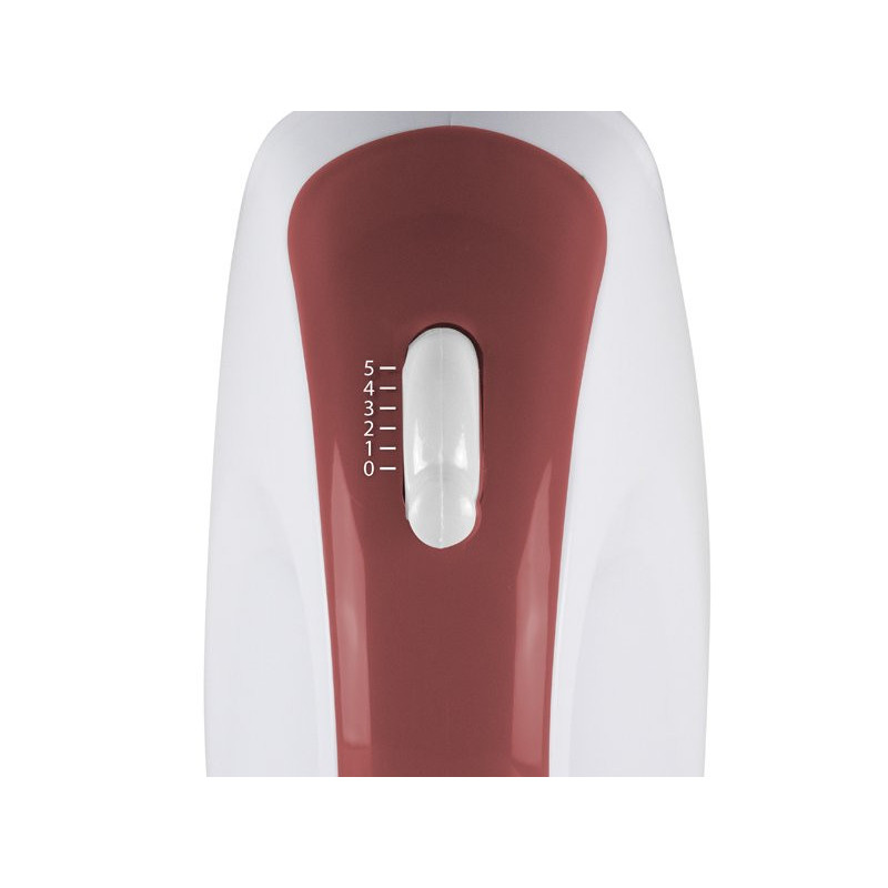 The whisk has 5 selectable speeds and comes with a pair of stainless steel whips for whipping and mixing.