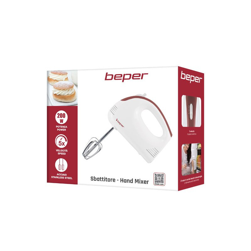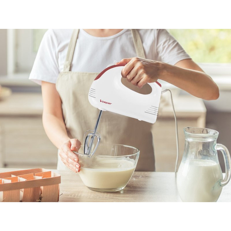 Lightweight electric beater, ideal for whipping eggs and mixing creams and cakes.