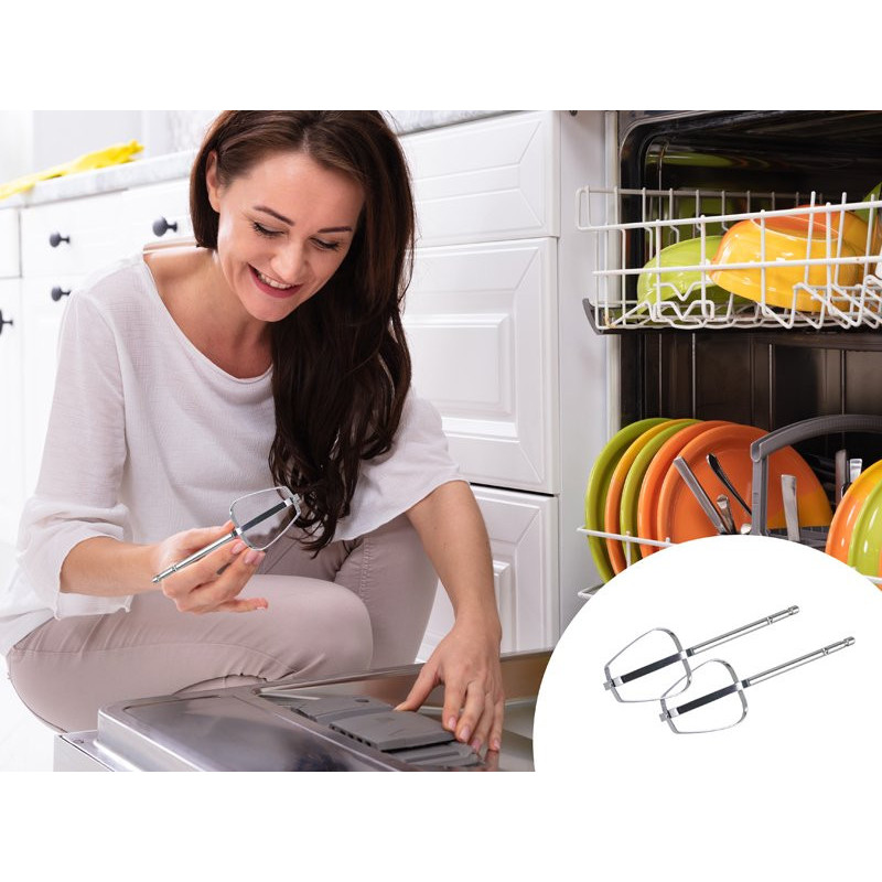 The whips are removable via the whisk release button and dishwasher-safe.