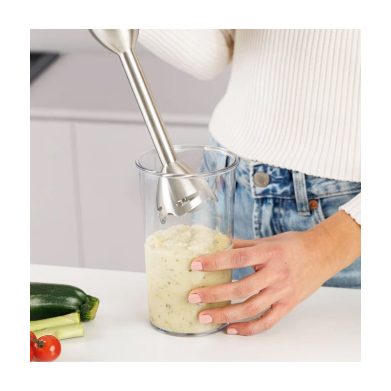 The Taurus Hand Blender HBA2300X has a powerful 2300W motor and comes with a removable stainless steel blade for easy cleaning. It features a 1L bowl, 0.6L chopper and variable speed settings for a variety of cooking tasks.