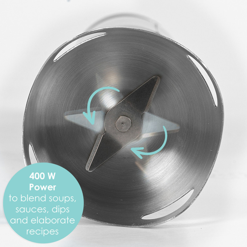 Making your favourite soups or homemade sauces is quick and easy with the impressive 400 W motor and stainless steel rod and blade.