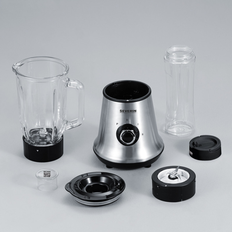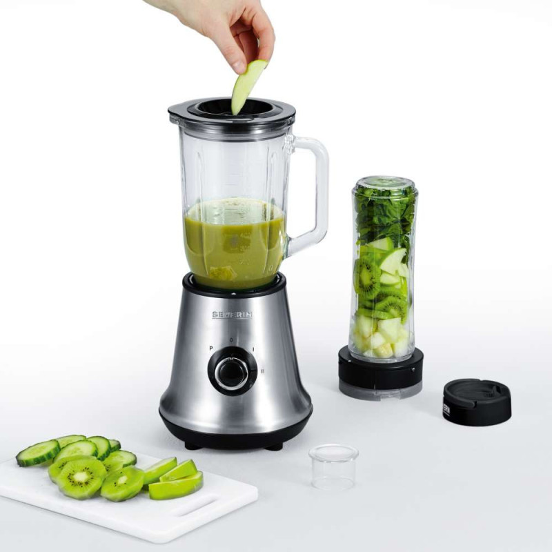Severin 3737 Multimixer + Smoothie Mix & Go, 500W, Standmixer: ca. 1l, Drinking container 600ml, 2 speeds, Brushed stainlesss steel-black
