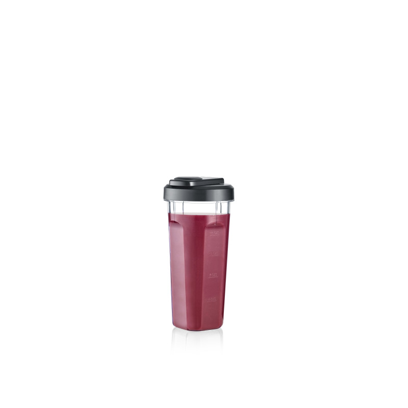The two 600 ml Tritan Mix & Go cups facilitate healthy enjoyment on the go: mix directly in the cup, lid and ready.