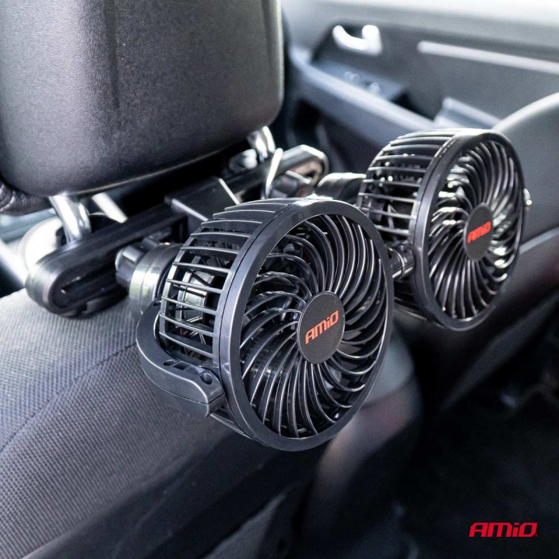 AMiO PRO DOUBLE CAR FAN POWERED BY 12V CAR LIGHTER 10 cm x2 MOUNTED TO THE HEADREST