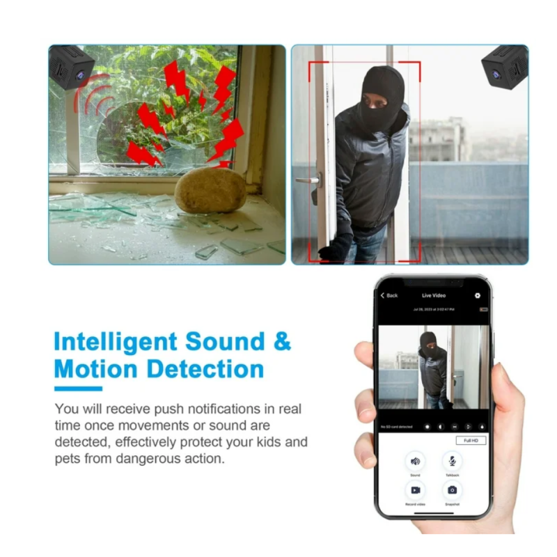 The Mini WiFi Camera 1080P is a high-quality, wireless surveillance system designed for those who value safety, convenience, and modern technology. Its small, compact design allows it to be discreetly placed anywhere, while its professional features ensure your home or office is always monitored.