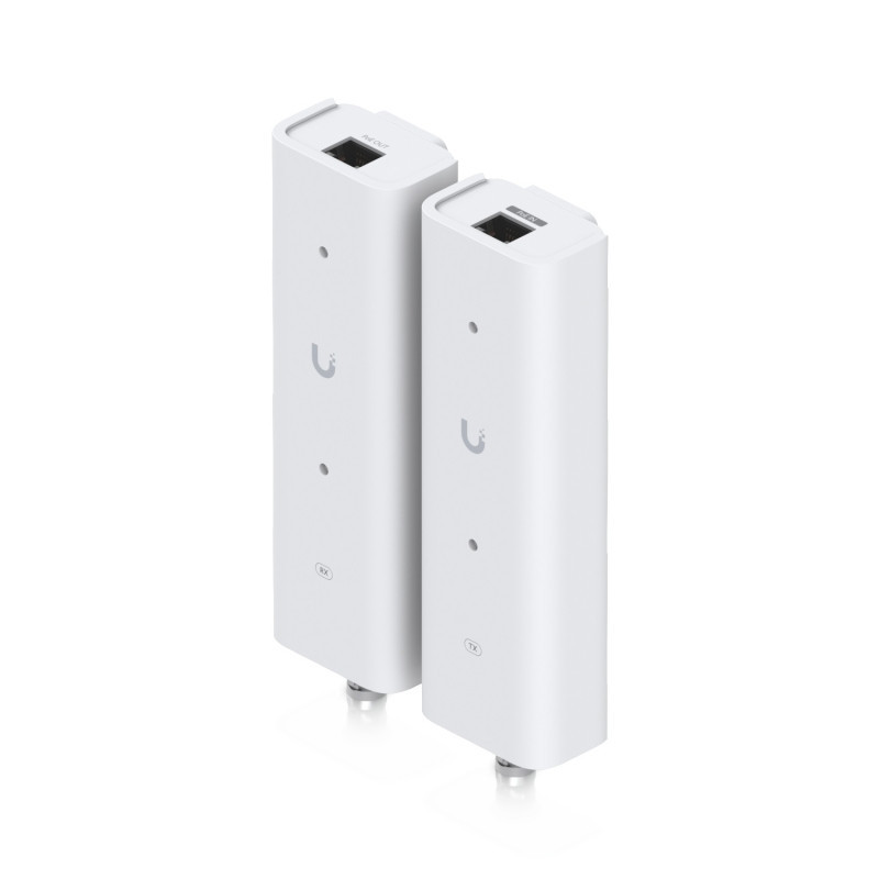 PoE Extension for Retrofit ApplicationsThe Ubiquiti PoE Over 2-Wire Retrofit Extender (UACC-Retrofit-PoE-2Wire) is a powerful solution for extending Power over Ethernet (PoE) over existing two-wire or coaxial cabling. Designed for retrofit applications, this extender eliminates the need for expensive and time-consuming rewiring by leveraging pre-existing infrastructure. The kit includes a transmitter and a receiver, enabling seamless PoE transmission across long distances. The transmitter connects to a PoE++ input and transmits power and data over a two-wire connection, while the receiver converts it back into a standard PoE/PoE+ output. Equipped with 2-wire to coaxial adapters, the system supports various wiring configurations, providing flexibility for different installation scenarios. This makes it ideal for upgrading older systems to modern PoE networks with minimal disruption.