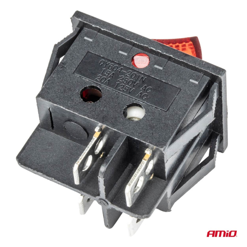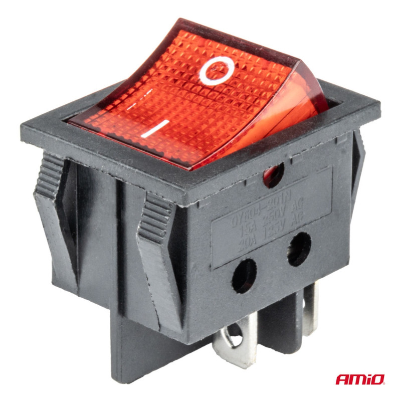 Włącznik czerwonym prostokątny 12V 230V podświetlany BU02 AMIO-03613