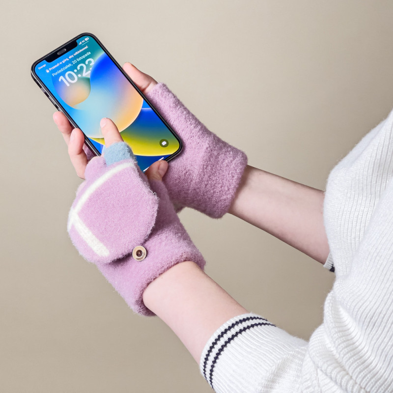 Ready for a winter adventure in comfort and style? Mitten-type winter telephone gloves will keep your hands warm thanks to densely woven materials. But that's not the end of the benefits! Mittens are so universal that they can be worn both with closed and open fingers. And what's more, you don't have to be an adult to enjoy them - the flexible material makes them suitable for children too. Add wind protection (thanks to an invisible cuff) and five pastel colors, and you get gloves that not only protect against the cold, but also add charm to your winter styling.