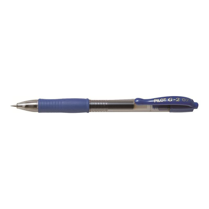 The Pilot G2 07 Blue is a gel pen with a 0.4 mm line width. It features blue ink and is designed for smooth writing.