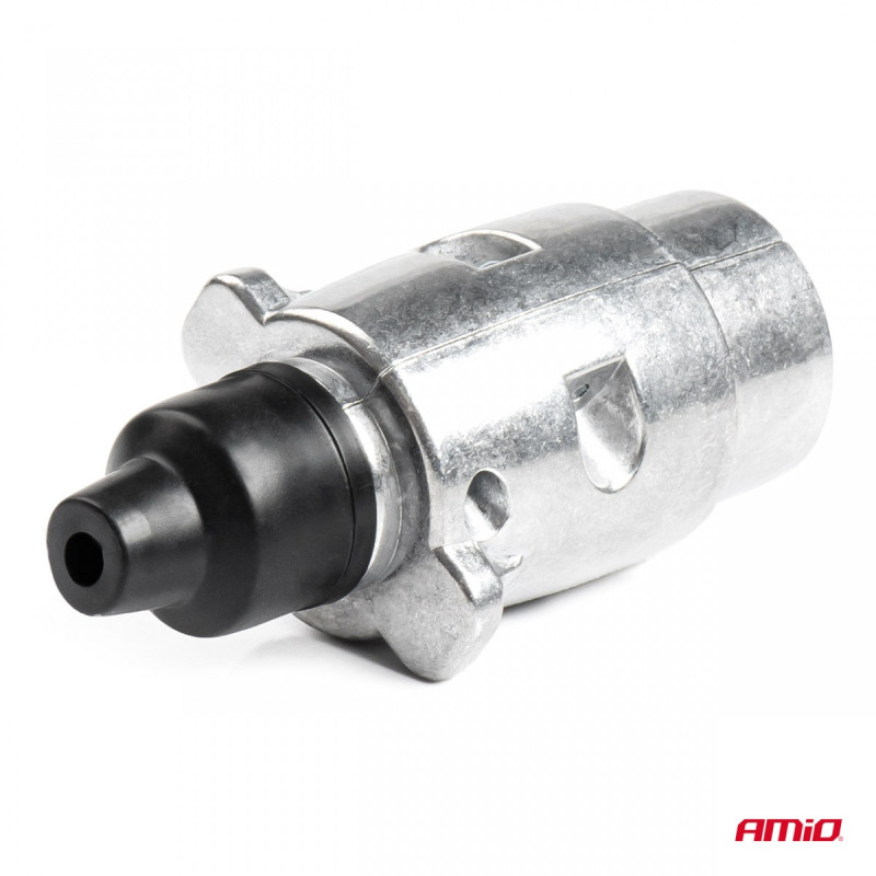 This 7-pin, twisted aluminum metal plug is suitable for trailers and flatbeds. The plug has copper contacts and is designed for 12/24V systems.