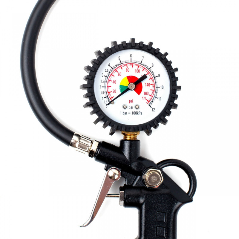 A pneumatic tire inflator with a pressure gauge is a must-have tool in every garage. The gun is comfortable, lightweight, practical, and aesthetically pleasing. It also features an air release valve and a rubber gauge cover.