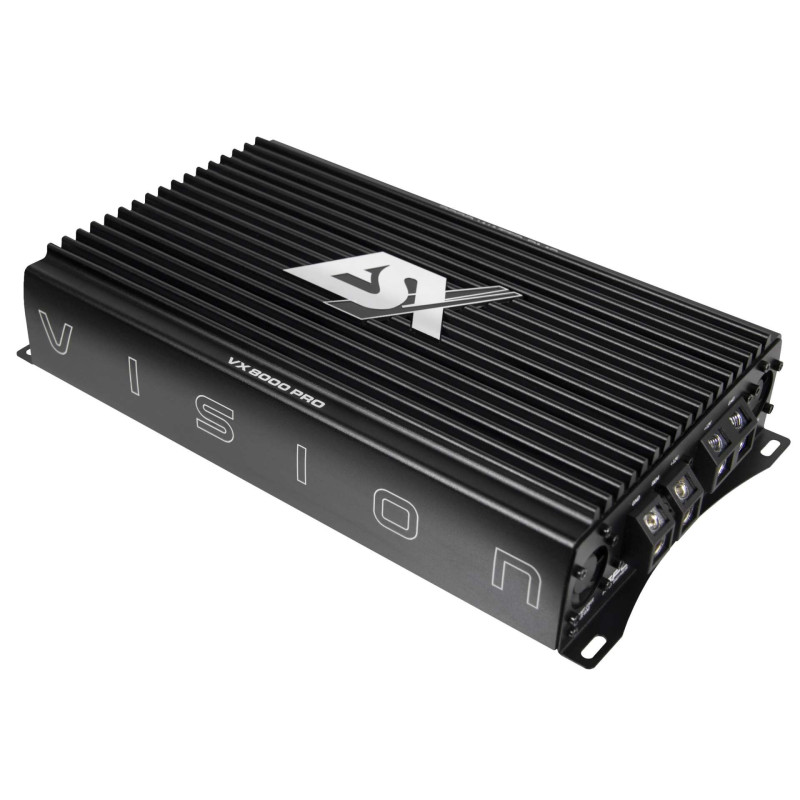 Neprilygstama galia ir valdymasGalingiausias serijos modelis -ESX VX8000PRO- tai monoblokų klasėULTRA D, siūlymas1 × 8000 W RMS esant 1 ΩTokia milžiniška galia leidžiapilnai išnaudoja net ir reikliausių žemų dažnių garsiakalbių potencialąir pasiekti itin aukštą dinamikos lygį, išlaikant aukščiausią garso kokybę.