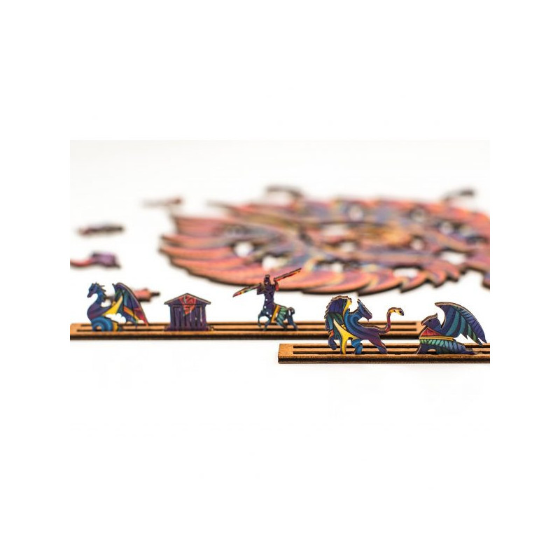 "Fantasy puzzles" - tai užburiančios savo spalvomis ir formomis medinės dėlionės. Kiekvieną dėlionę sudaro daug spalvingų gyvūnų figūrų, su kuriomis galima ir žaisti. Kiekviena dėlionės detalė yra unikali savo forma. "Fantasy puzzles" dėlionė - tai laisvalaikio praleidimo forma, kuri padės Jums pabėgti nuo kasdienių rūpesčių ir pasinerti į fantastinį, unikaliomis spalvomis ir formomis stebinantį mitologijos pasaulį.