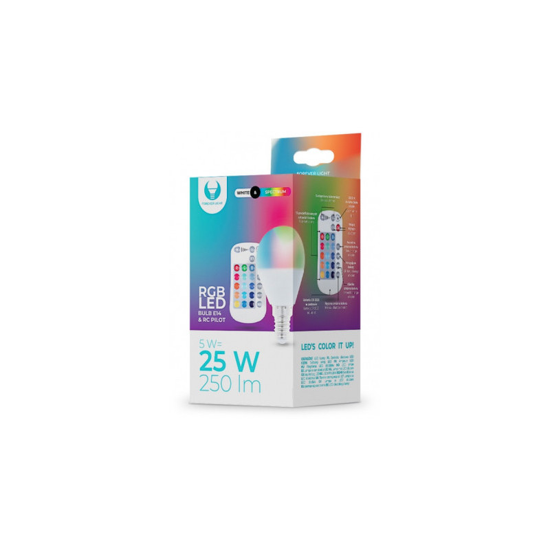 „Forever Light“ E14 G45 RGB + balta 5W + RC