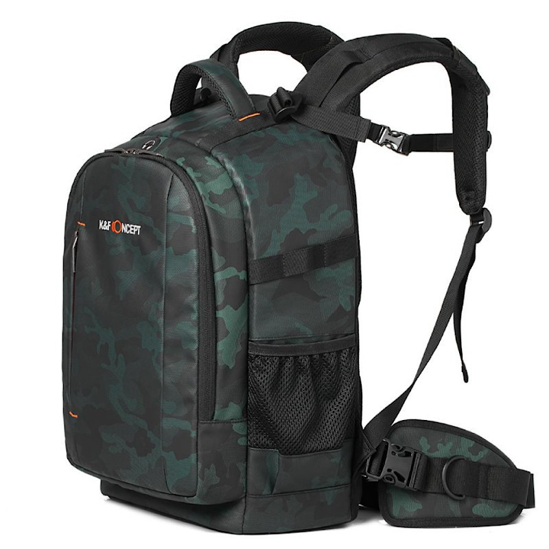 Ergonomiška kamera kuprinė K&F Concept "Forest Camo" pasižymi erdviu interjeru su pritaikomais skyreliais dviem kameroms ir keliais objektyvais. Pagaminta iš tvirto 900D nailono, su lietaus apsauga ir paminkštintu nugaros užvalkalu komfortui.