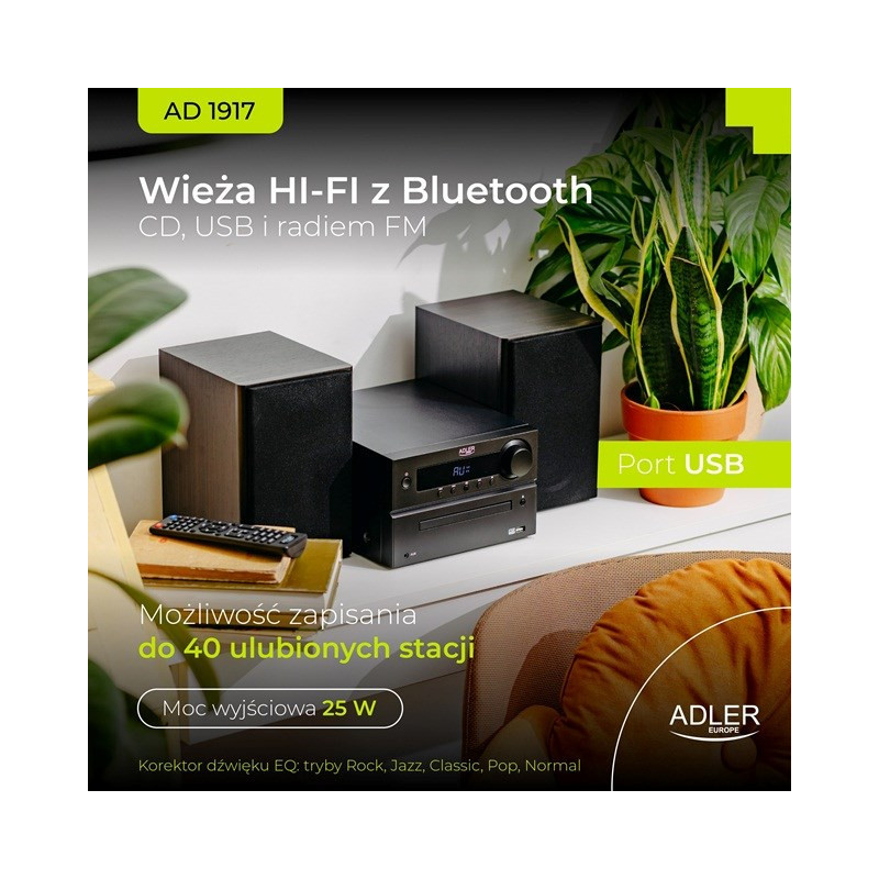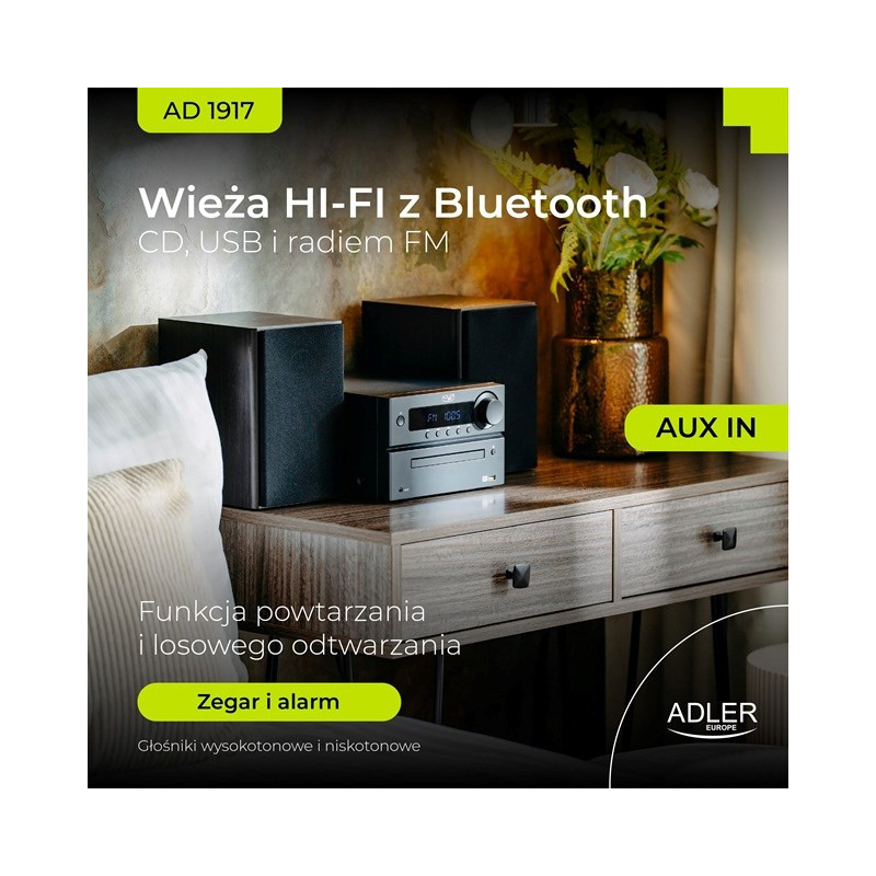 Adler AD 1917 HI-FI bokštinė kolonėlė su „Bluetooth“ / CD / USB / FM radijas, juoda